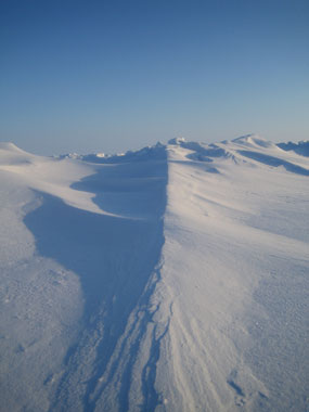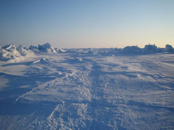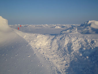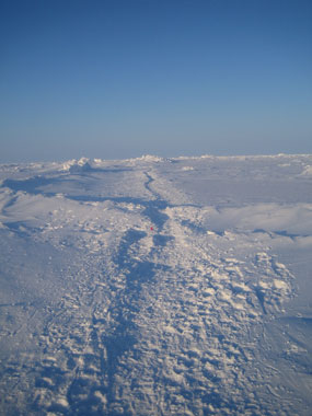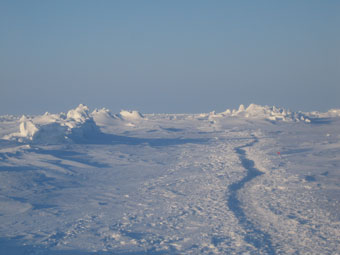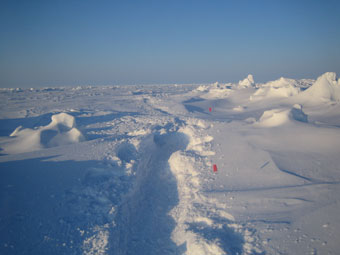 A spectacular route ! Small pressure ridges flank a flatter ice sheet |