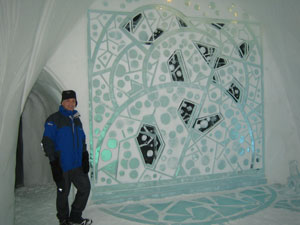 Icehotel - suite sculpture Russian art deco ice sculputure in a bedroom suite |